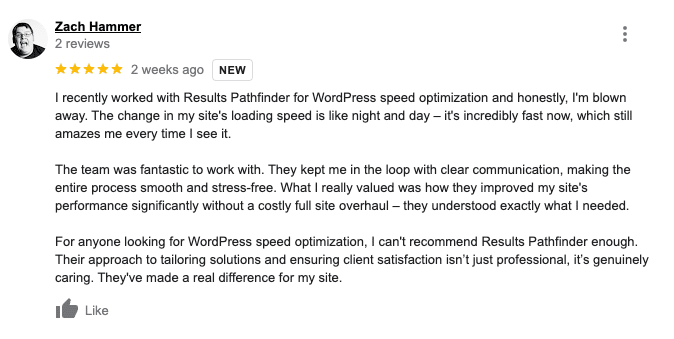 For anyone looking for WordPress speed optimization, I can’t recommend Results Pathfinder enough. Their approach to tailoring solutions and ensuring client satisfaction isn’t just professional, it’s genuinely caring. They’ve made a real difference for my site.